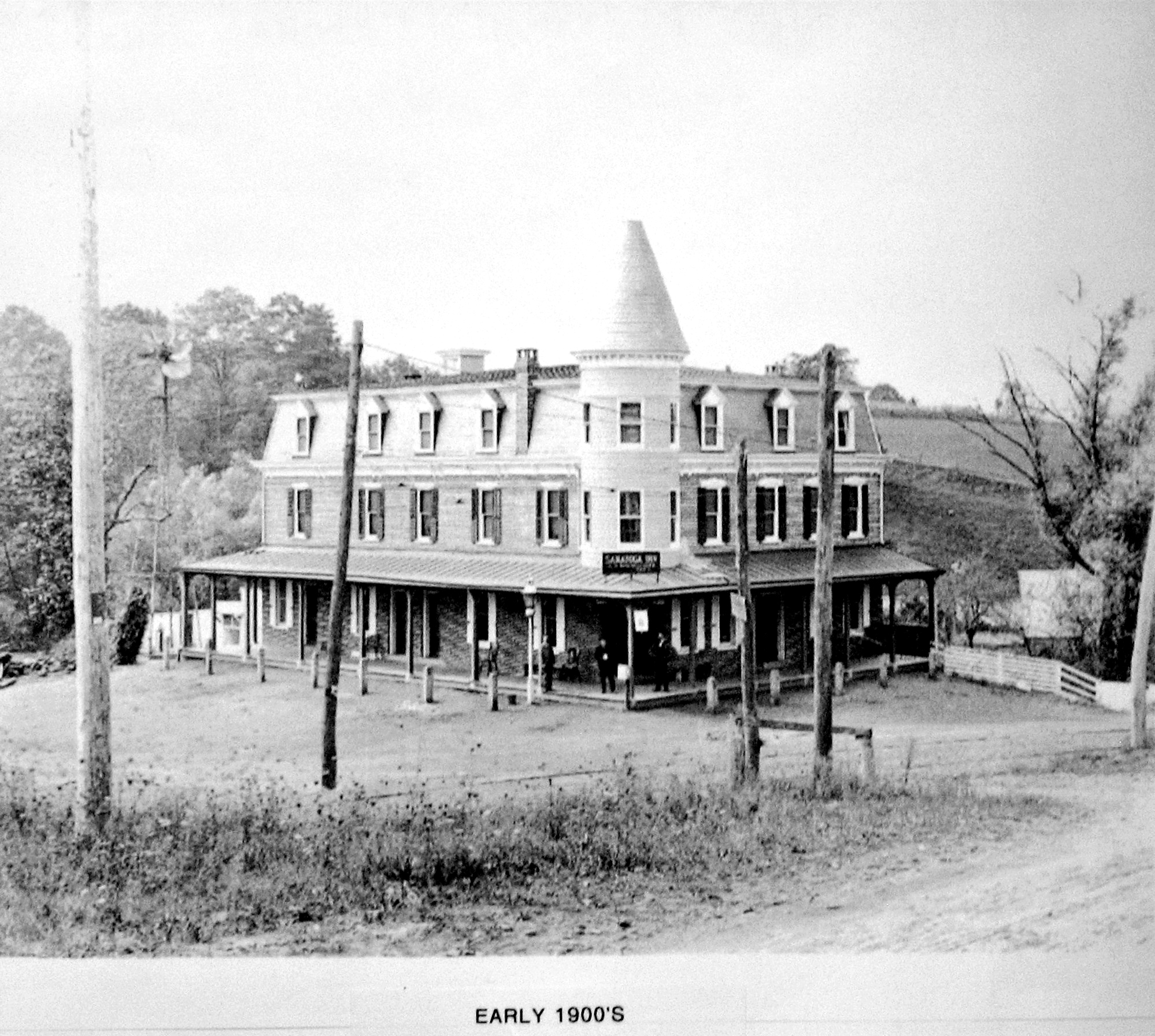 There were also several hotels in the area. The Pleasantview Hotel, situated on the northwest corner of this intersection dated back to the 1700’s. For a time it was a barroom and restaurant, later an ice cream parlor, and finally became the home of the Sanatoga Post Office. Then there was the Crooked Hill Tavern, located at E. High St. and S. Sanatoga Road, which later became the Sanatoga Inn. Today it is known as Cutillo’s Restaurant. It was first opened about 1770. There was also the Long View Hotel, a resort hotel, located on the side of the hill near Sanatoga Park. It burned to the ground in the early 1900’s. The loss of the beautiful hotel inspired local residents to form the Sanatoga Fire Co. in 1908.