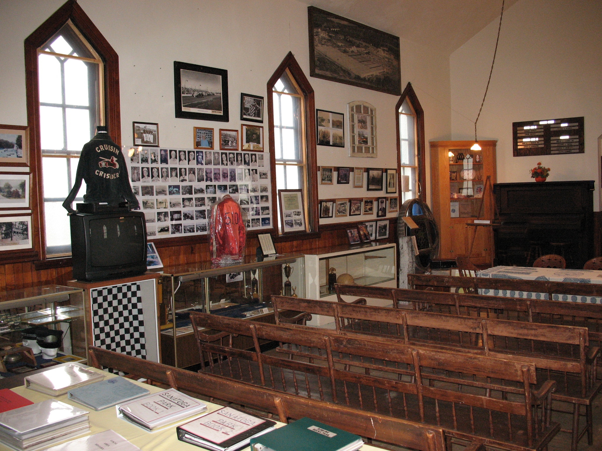 There are signs from some of the landmarks in the area like Kemp’s store, and Shuhart’s before them, and Pleasantview Farm (the Saylor farmstead). There are a lot of class photos both from the different schools, as well as from the Sunday School itself. We have the original bible from the chapel in a display case. We have old sleigh bells from the Kurtz farm on display. There are pictures of some of the old farmsteads in the area, and some interesting shots of the harvesting of the ice at Pruss Hill Dam. We have photos and memorabilia from the 1976 Bicentennial Wagon Train encampment in Saylor’s field displayed in a cabinet built by Elmer Saylor. We also have some articles of clothing, such as a trolley conductor’s uniform and an old fireman’s uniform.