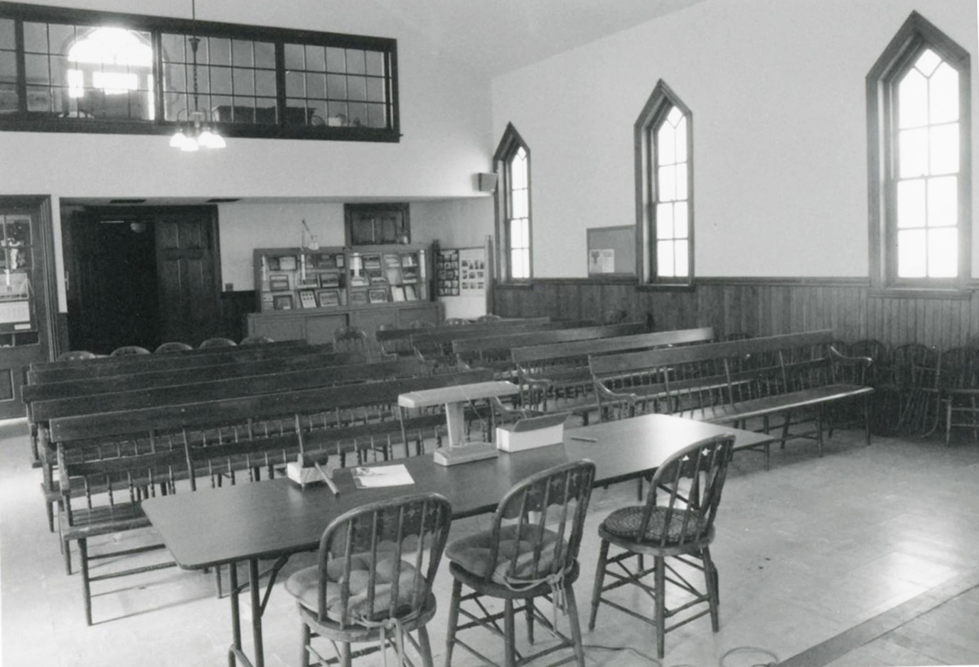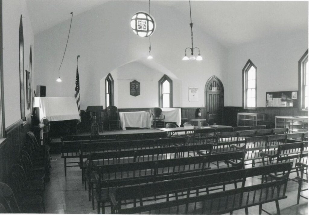 The building remains to tell the story of an important religious and community event that occurred during the nineteenth and twentieth centuries in small towns throughout both the Commonwealth and the northern Montgomery County region. The gathering of the community’s children for worship and social events was an important activity in the pre-television age. The resource is also significant under Criterion C for its architecture. The Sanatoga Union Sunday School is an excellent example of a Gable-End Church plan with vernacular one-room schoolhouse elements. It represents these elements through its massing, scale, and design. The Sanatoga Union Sunday School retains all seven aspects of integrity, including location, design, setting, materials, workmanship, feeling and association. Not only is the exterior in excellent condition, the interior remains true to its early form. Furthermore, the Sanatoga Union Sunday School retains many of its original interior features such as wooden benches and children’s chairs.
